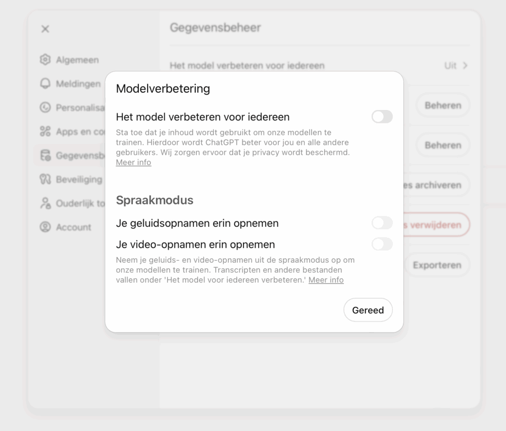 Deze instelling kan je beter uitvinken als je veiliger met ChatGPT aan de slag wilt gaan:
